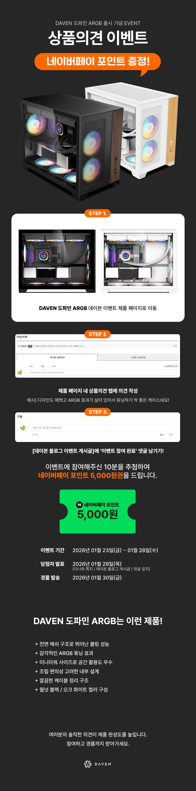 DAVEN 도파민 ARGB의 출시를 기념하여 이벤트를 진행합니다.